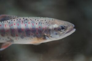ヤマメとよく似ていますが、赤い斑点があるのが特徴です。また、成長すると降海型(サツキマス)になる個体も存在し、大型化する場合があります。