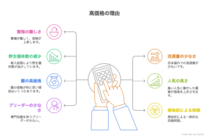 さらに、感染症による一時的な輸送停止や、専門ブリーダーの不足といった課題も、価格上昇に拍車をかけています。